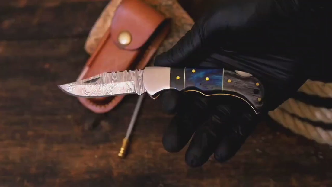 Discover the essence of fine knife-making with the Heritage Inlay Handmade Damascus Pocket Knife, a perfect blend of tradition and modern craftsmanship. The blade is hand-forged from layered damascus steel knives, creating a ...