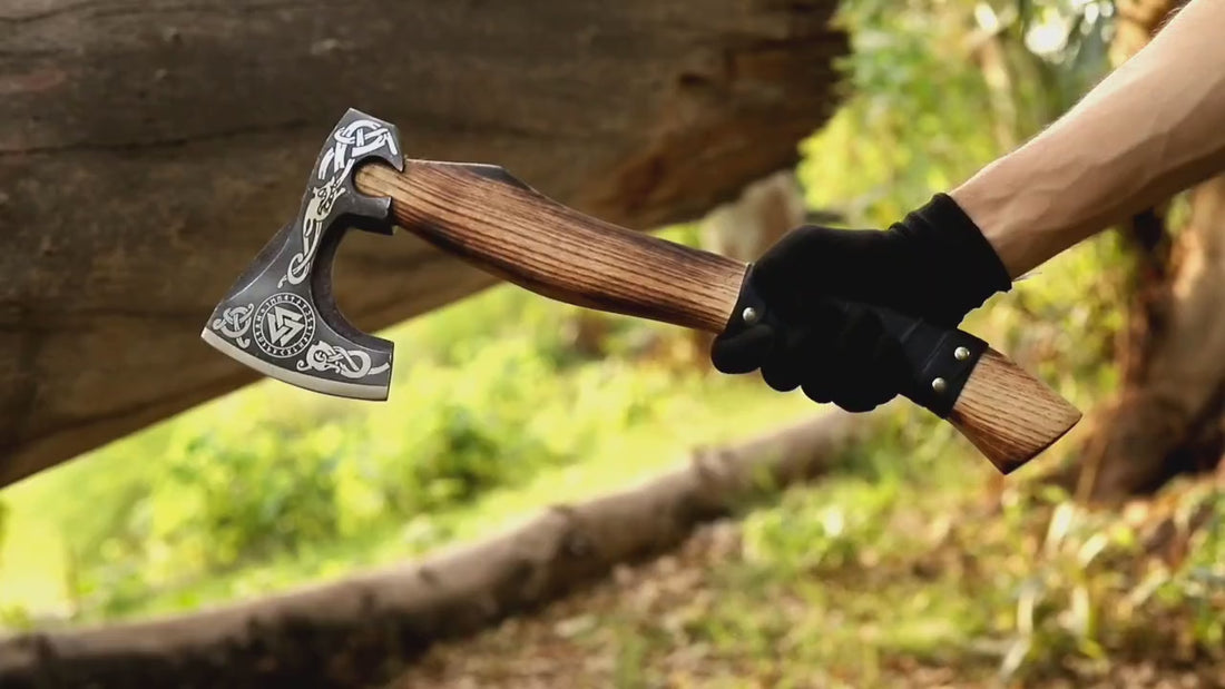 Its ash wood handle, wrapped in premium genuine leather, provides a secure, ergonomic grip that enhances comfort and control while preserving the authentic Viking aesthetic. Every detail — from the forged steel head to the hand-finished handle — showcases traditional artistry and durability that stands the test of time.